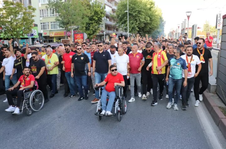 Kayserispor taraftarları, Galatasaray ile oynanacak müsabaka öncesi yürüyüş korteji düzenleyerek ekiplerine dayanak verdi. Melikgazi'de...